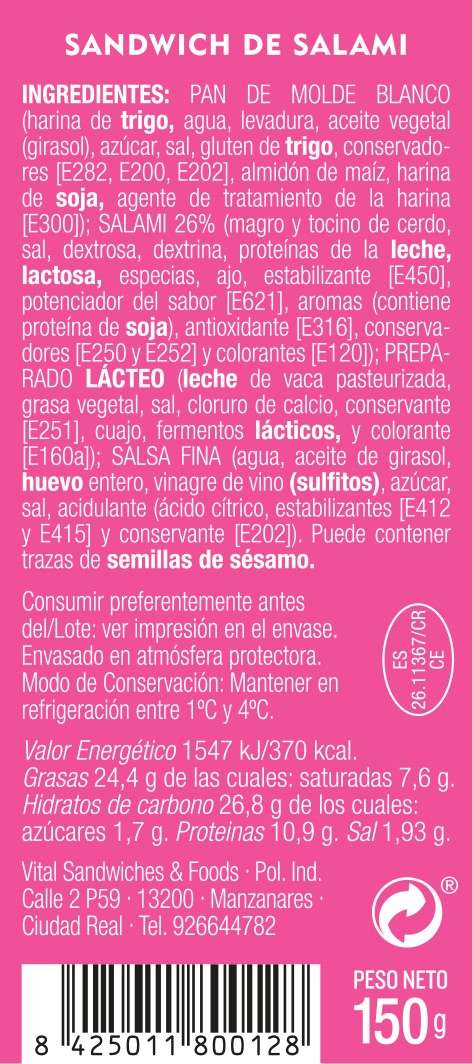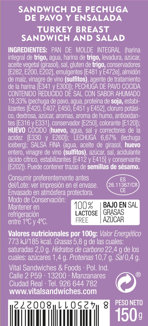 En nuestra línea Vital podrás encontrar el sándwich mas saludable del mercado con menos de 190 kcal por